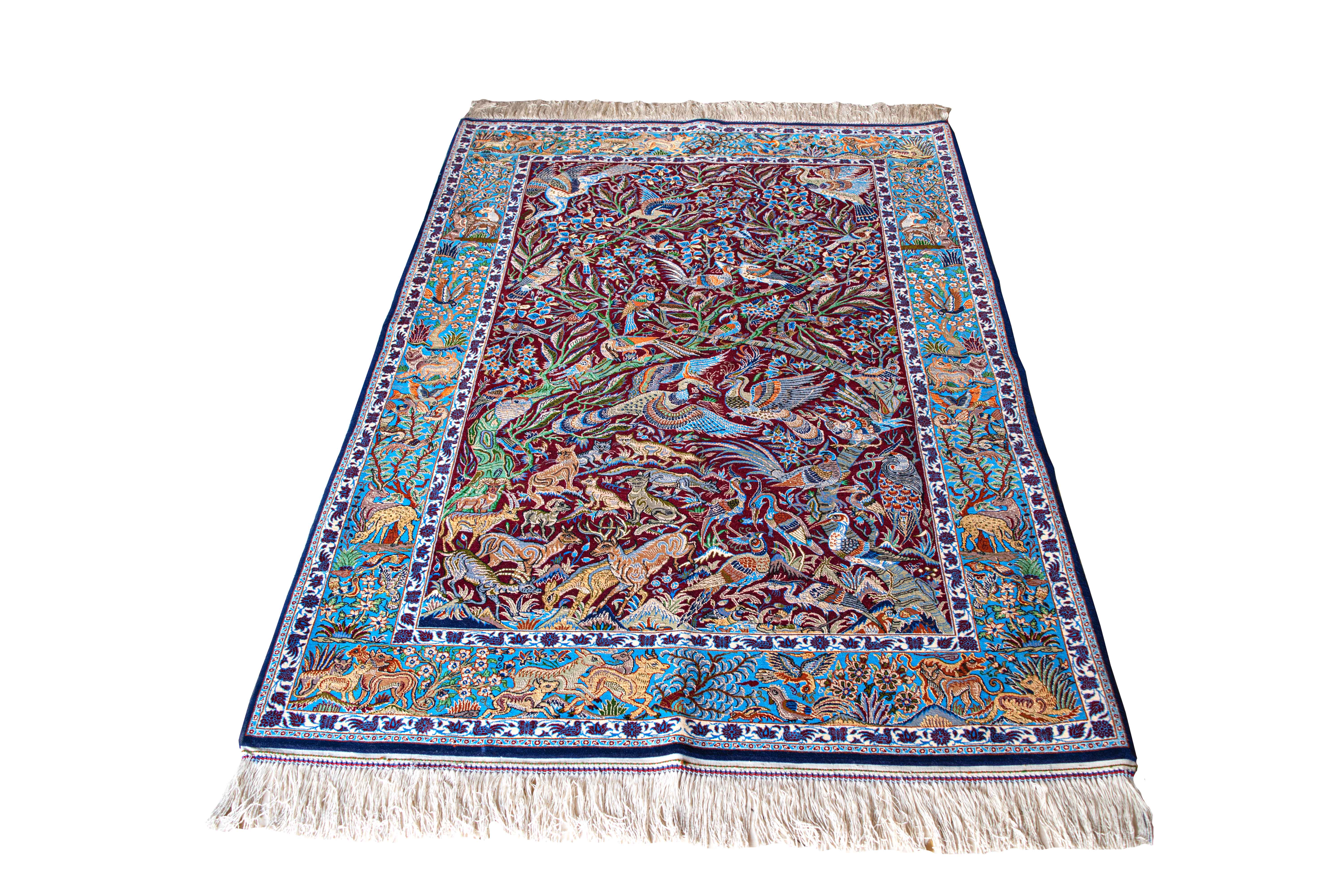 قالیچه دستباف گل ابریشم اصفهان ۱۱۰ × ۱۶۰ کد PE0365