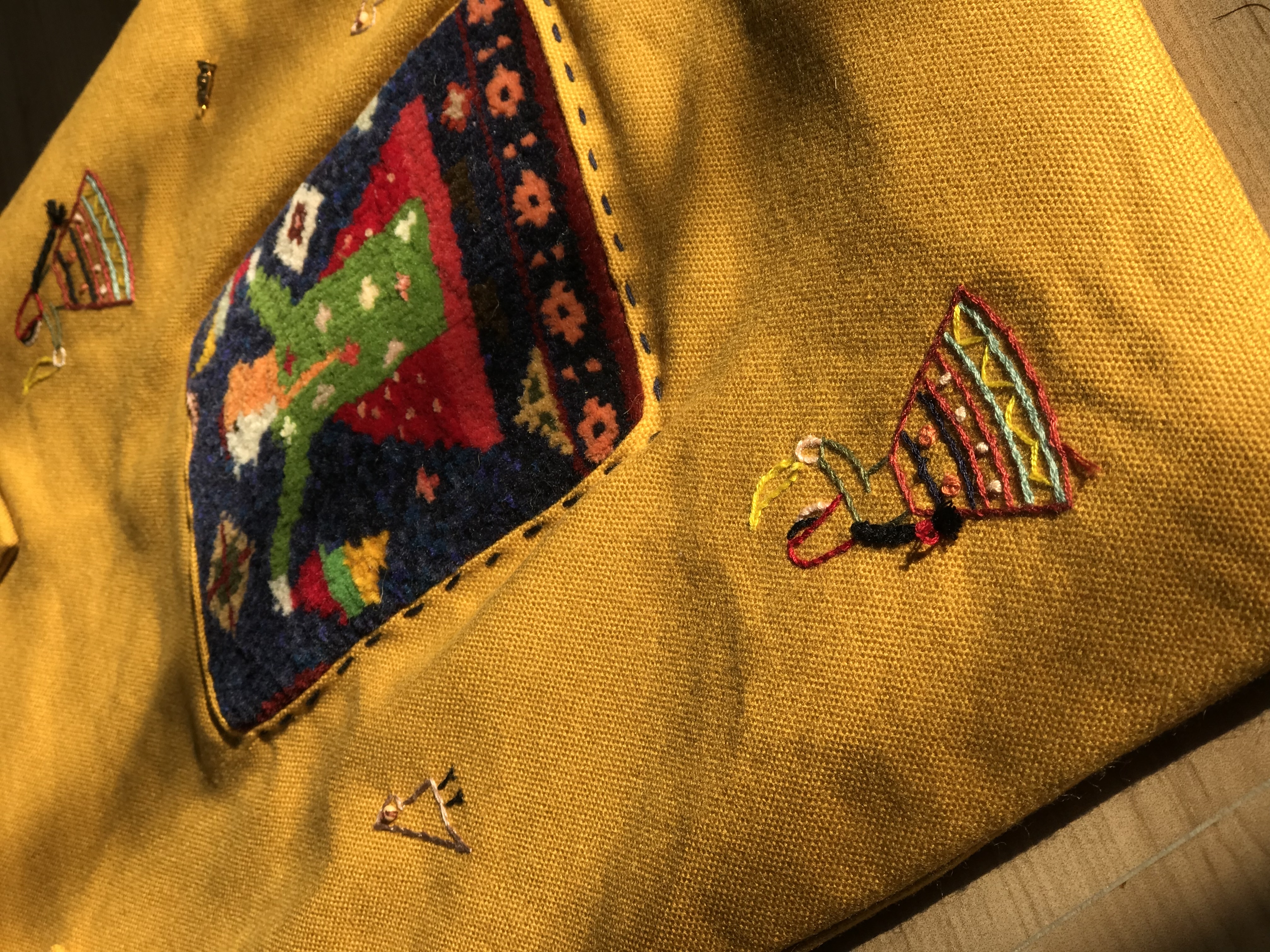 این اثر از آثار و زندگی عشایر الهام گرفته شده که در بافته، زن عشایر درحال رقص با دستمال بوده و نقوش جانوری با گلدوزی روی آن اجرا شده است.